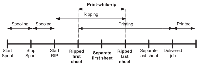 Time line for job stage transitions for Print-while-rip model