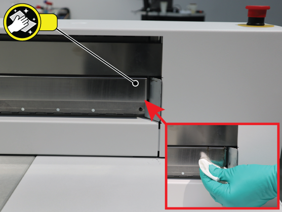 Legalább havonta végezze el a sínek és csapágyak ellenőrzését és tisztítását. Ha az állványsíneken szennyeződést vagy festéket, illetve a csapágyak szürke védőlemezén törmeléket talál, azonnal végezzen tisztítást.