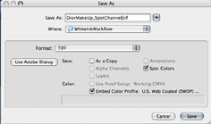 Speichern Sie die Datei im TIFF-Format, und stellen Sie sicher, dass die Option für Volltonfarben aktiviert ist, wenn Sie dieses Bild direkt in ProductionHouse laden möchten.