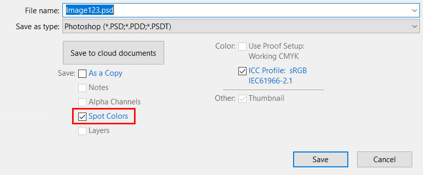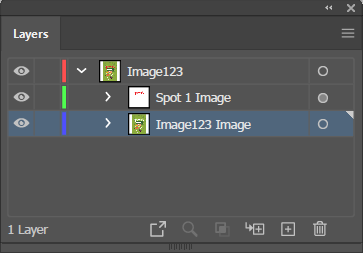 Namn - Namnet som du ger det här spotkanalskiktet måste vara Spot1 eller Spot2 och är den viktigaste delen av filens förberedelse. Denna namngivna kanal gör det möjligt för ONYX RIP-Queue att avgöra att data måste skickas till spotkanalen. Spot1 är reserverat för vitt och Spot2 för lack/glansdata.