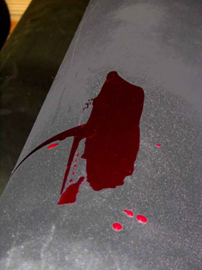 Tørk opp resten av blekketHvis skrubbehandlingen etterlater fibre fra kluten på overflaten, vent til overflaten tørker fullstendig, følg deretter prosedyren som er opplistet ovenfor for å "Fjerne fast avfall".