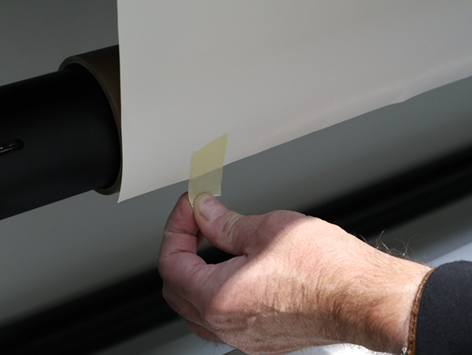 Materiaal met tape aan de kern van de opwikkelrol bevestigen