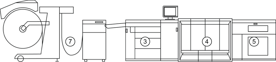 De papiermodule bevat vier papierladen. De papierladen bevatten het materiaal waarop wordt afgedrukt. De standaardconfiguratie van het systeem bevat één papiermodule. U kunt één of twee papiermodules toevoegen aan de standaardconfiguratie om de invoercapaciteit voor materiaal te vergroten. (Zie De papiermodules.) |