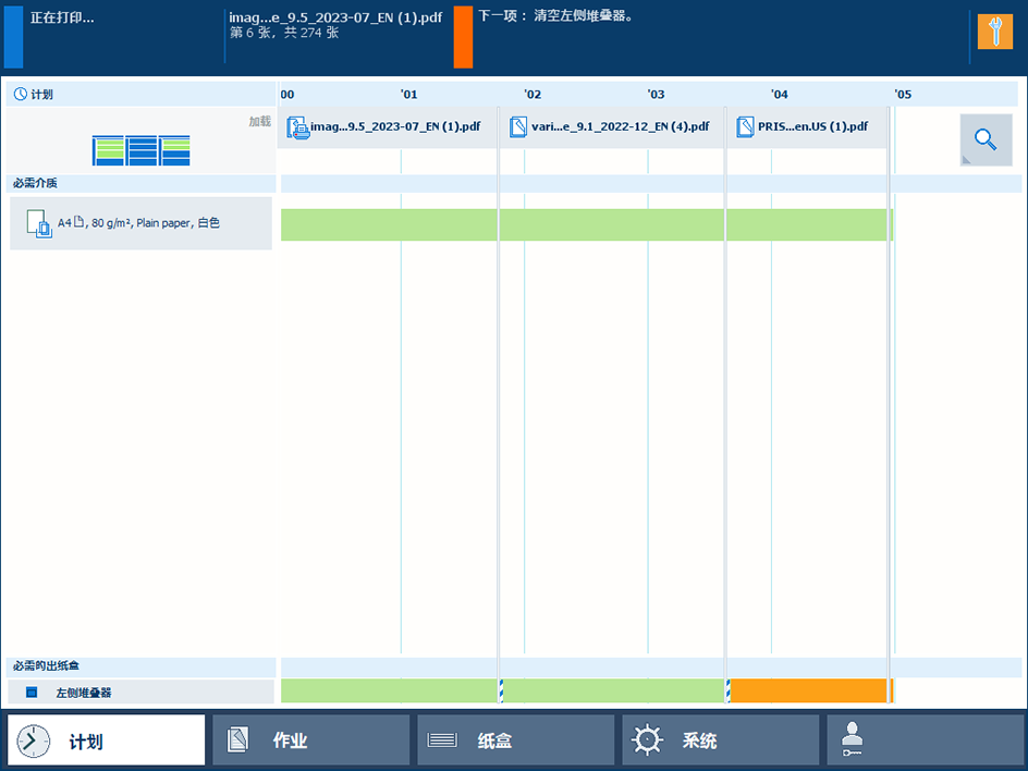 如果打印机上提供了[计划] 视图,您可以在[计划] 部分中直接装入和指定所需的介质。