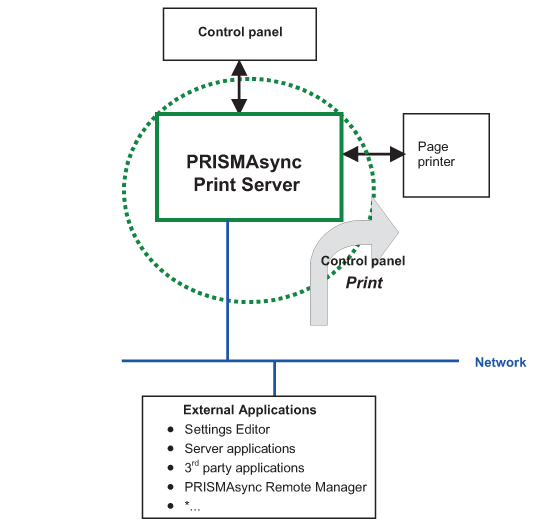 The PRISMAsync Print Server is part of the varioPRINT iX-series. The print server handles job control and data processing for print.
