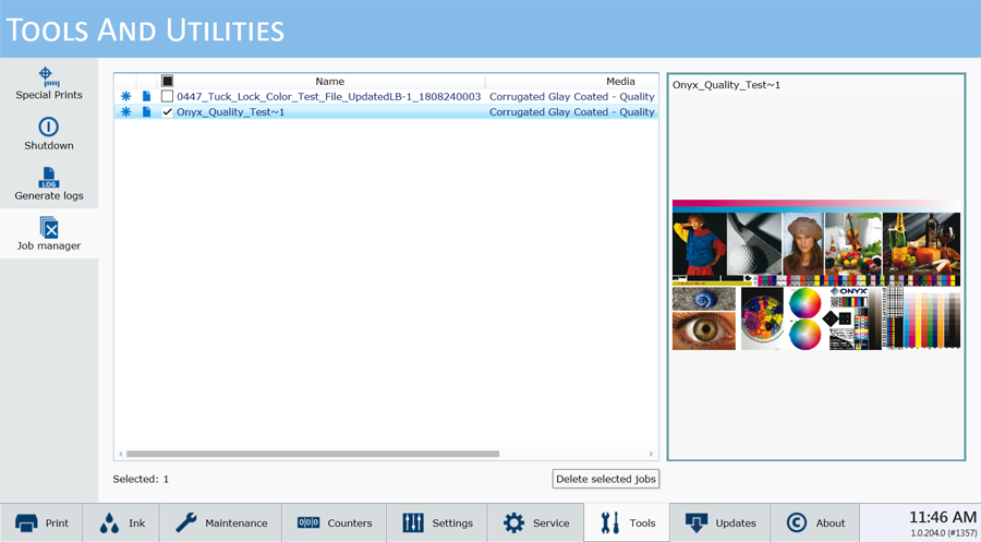 Tulosta erikoistuloste siirtymällä tulostustyön ohjausmoduuliin. Se tulee esiin aktiivisten töiden luetteloon ja tulostetaan kuten mikä tahansa muu työ.