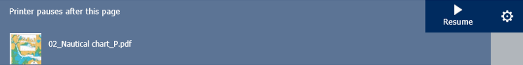 Klepněte na aktivní úlohu v dynamické liště na uživatelském panelu. Zobrazí se fronta a [Pozastavit] v dynamické liště. Klepnutím na [Pozastavit] pozastavíte tiskárnu. Dlaždice [Pozastavit] se změní na dlaždici [Obnovit]. Všimněte si, tiskárna dokončuje probíhající tiskové úlohy, takže její pozastavení může nějakou chvíli trvat. |