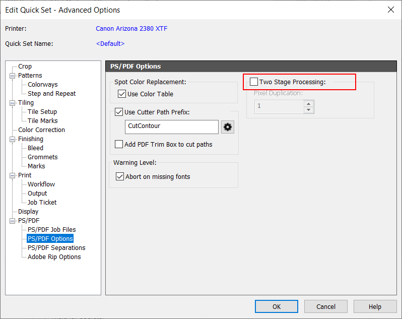 Utskriftsläget kvalitet-lager i Arizona används för att skriva ut vitt bläck-tillämpningar såsom undertryck för icke-vita material, övertryck för bakgrundsbelysta tillämpningar visade som 2:a ytan eller som ett mittenlager för en dag-natt-tillämpning.