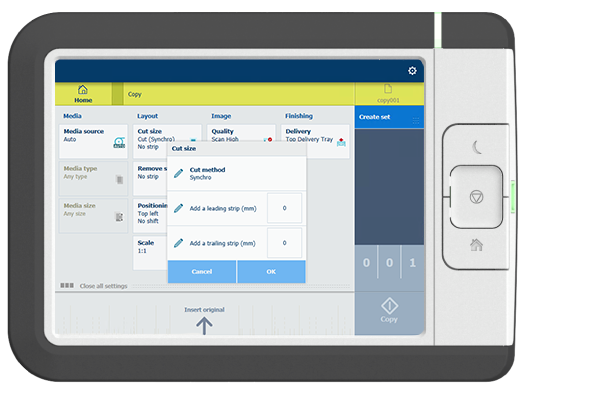 Weitere Informationen zu den Einstellungen für die Schnittgröße finden Sie unter Erweiterte Einstellungen für Kopieraufträge.