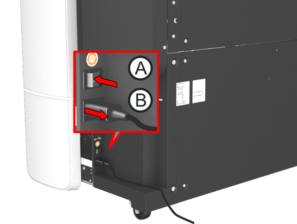 Ziehen Sie das andere Ende des Stromversorgungskabels aus der Anschlussbuchse hinten links am Drucker