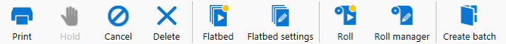 Ενεργοποιεί ή απενεργοποιεί την ουρά εκτύπωσης της επιλογής μέσου σε ρολό (επιτρέπει την επιλογή παραμέτρων μέσου πριν από την εκτύπωση της εργασίας). Οι εργασίες εκτύπωσης μέσου σε ρολό δεν εκτυπώνονται εάν δεν έχει επιλεγεί αυτό το εικονίδιο. Για τις εργασίες εκτύπωσης μέσου σε ρολό δεν απαιτείται κάποια ενέργεια χρήστη για την έναρξη της εργασίας εκτύπωσης μόλις εκτελεστεί αρχικοποίηση της μονάδας ρολού (ανατρέξτε στη Διαχείριση μέσου σε ρολό στο RMO). Εάν έχει επιλεγεί αυτό το εικονίδιο και η κατάσταση εργασίας δεν βρίσκεται σε αναστολή, οι εργασίες εκτύπωσης μέσου σε ρολό θα ξεκινήσουν αυτόματα όταν ο εκτυπωτής λάβει την εργασία. |