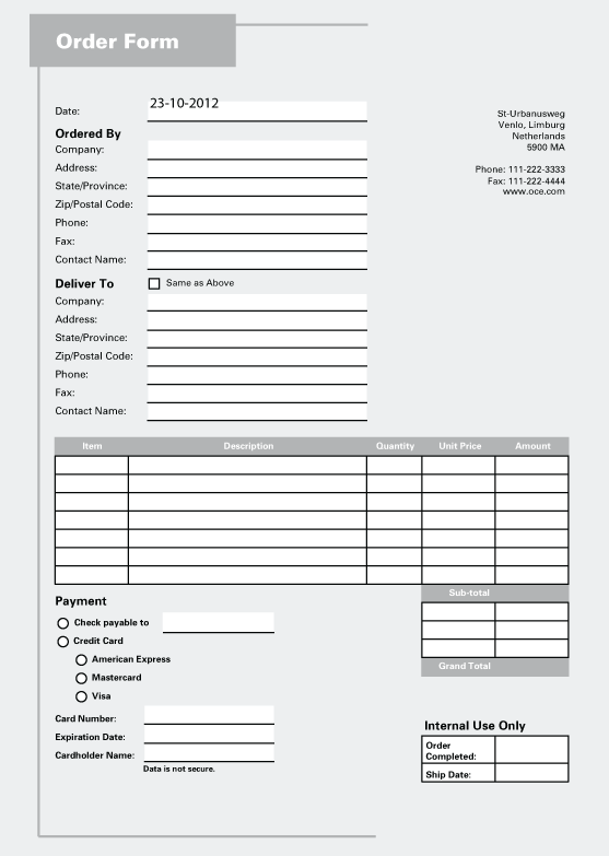 Når du udskriver tekst i formularer, skal teksten udskrives i det angivne område. En adresse eller dato skal f.eks. udskrives på den korrekte placering. Her kan du se et eksempel , hvor den udskrevne dato ikke er placeret korrekt.