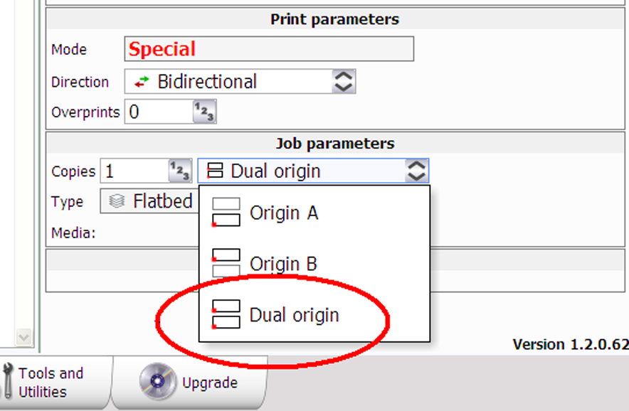 Če velikost vaše slike ne presega 1,25 x 2,5 metrov (4 x 8 čevljev), se v meniju Parametri naloga pojavi možnost Dvojni vir (Dual Origin).
