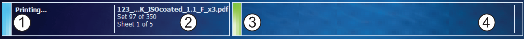 X는 인쇄 작업의 현재 상태를 나타냅니다.Y는 인쇄 작업의 총 세트 수 또는 부수를 나타냅니다. 작업의 정렬 방식을 [세트 별로] 로 설정하면 대시보드에 세트 수(Set X of Y)가 표시됩니다. 작업의 정렬 방법이 [페이지 별로] 로 설정되어 있거나 스트림 작업을 인쇄하는 경우에는 대시보드에 부수만 표시됩니다. |