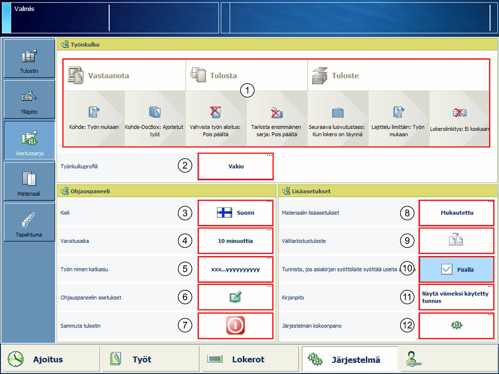Työnkulkuprofiilin valitseminen tai tarvittavien asetusten määrittäminen manuaalisesti. |