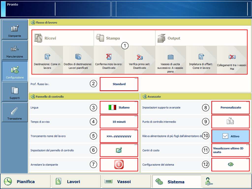 Consente di accedere in modo diretto a una serie di importanti impostazioni dell'operatore autorizzato nell'editor delle impostazioni sul controller PRISMAsync. |
