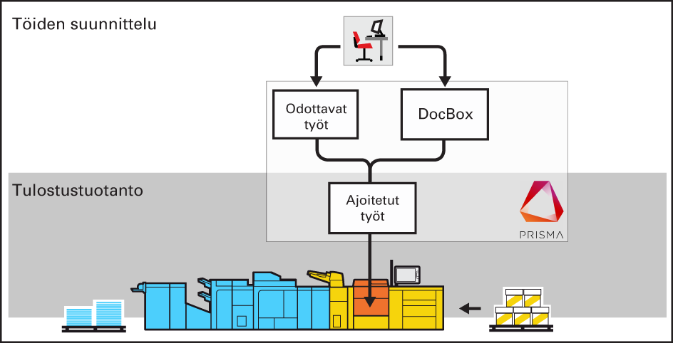 Työt lähetetään tulostuspyynnössä tai kopiointityössä määritettyyn kohteeseen. |