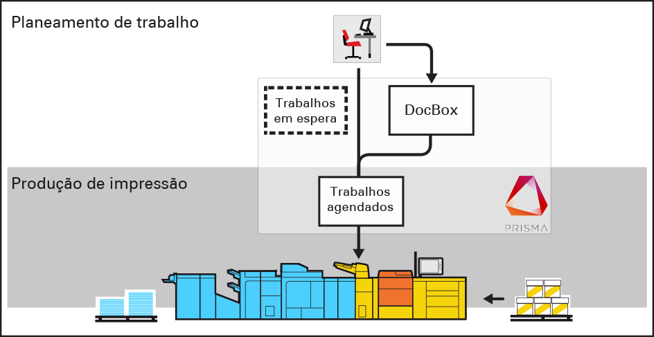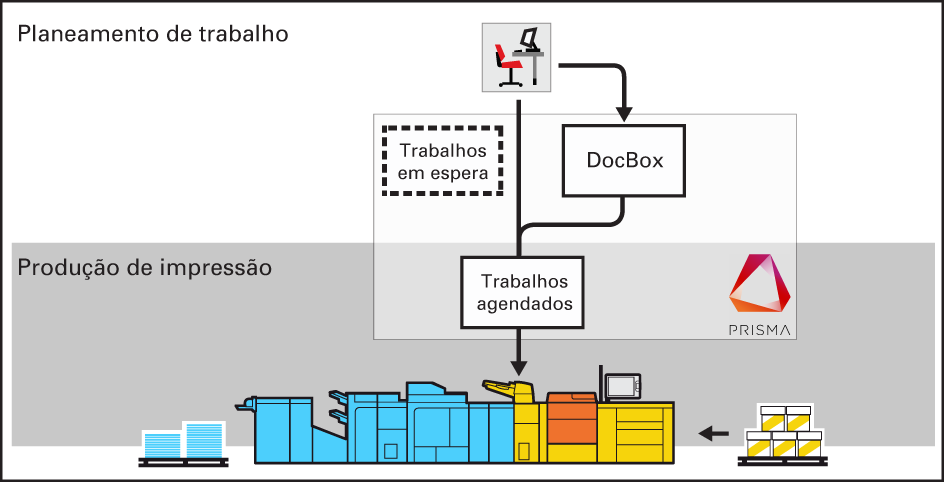 Os trabalhos são enviados para o destino definido na folha de trabalho ou no trabalho de cópia. |