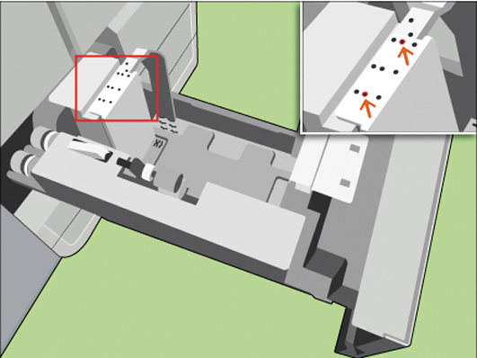 [Anbring det øverste papirstyr Ret de 4 stifter ind efter den relevante åbning.] |