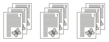 Zmiana metody sortowania wydruków. Można wybrać metodę sortowania [Stronami] lub [Zestawami].