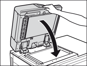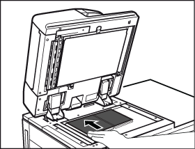 Use the glass plate to copy or scan bound originals (such as books and magazines), heavy or lightweight originals, and transparencies. Also place originals on the glass plate when you want to copy an A3 original with an image that extends all the way to the edges without the periphery of the original being cut off.