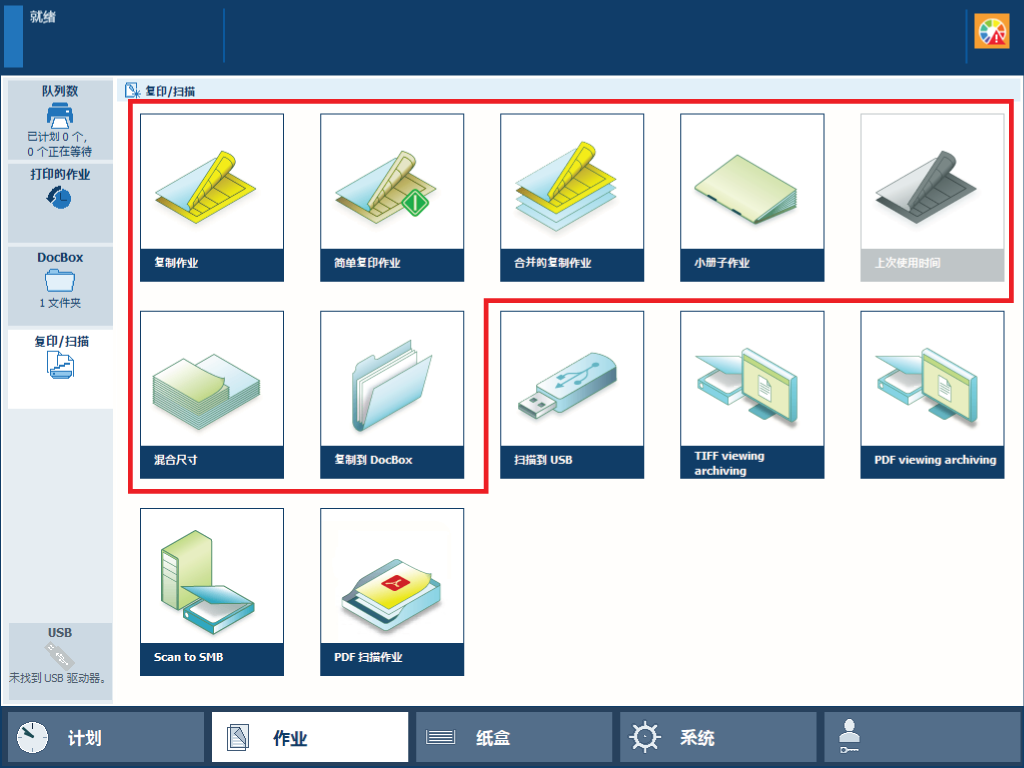 当复印作业的目标位置是第一个可用的 DocBox 文件夹或您选择的 DocBox 文件夹时。 |