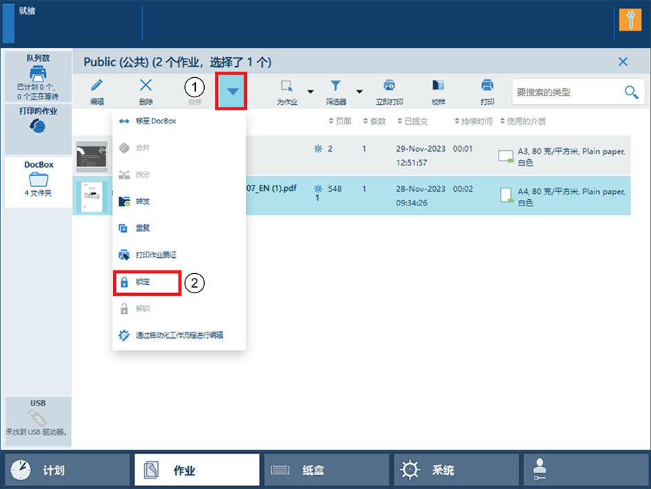 锁定 DocBox 中的作业