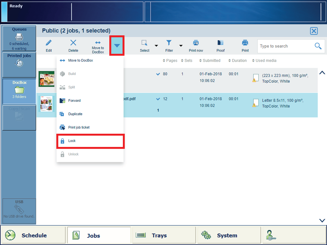 锁定 中的作业DocBox