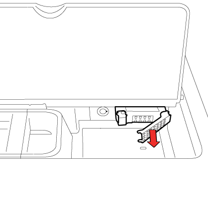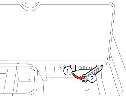Tryck på vänster lås (1) på hårddiskens kåpa. Höger handtag (2) aktiveras. |