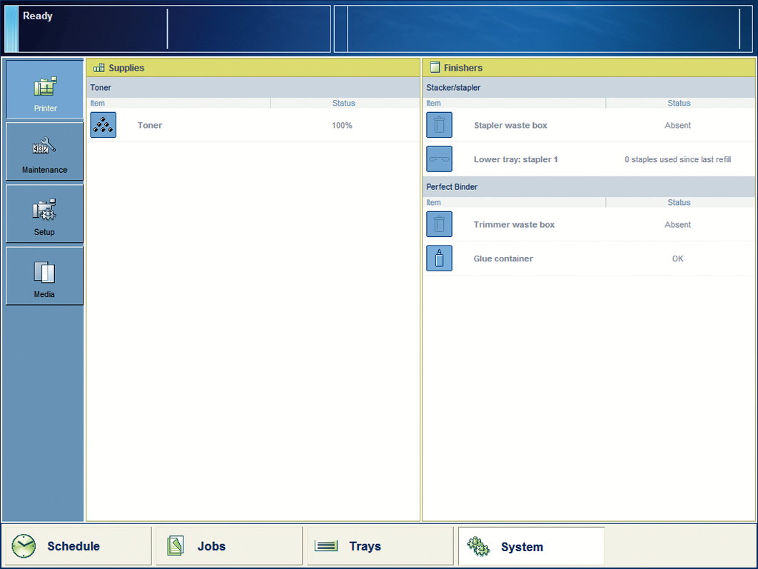 На панель[Расходные материалы] отображается текущий уровень наполнения.