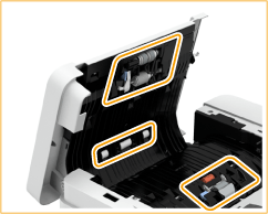 Используйте синий рычаг, чтобы [Откройте белую пластину.] Аккуратно откройте крышку, чтобы не повредить стекло экспонирования. |