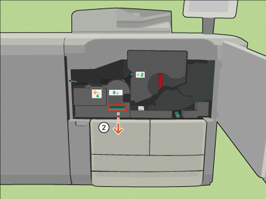[Utilizzare la maniglia 3 per estrarre l'unità di trasporto.] |