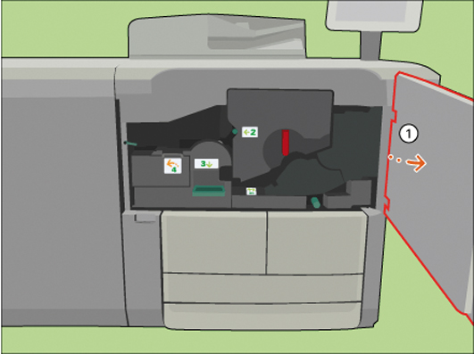 [Bruk håndtak 4 til å åpne vendeenheten.] |