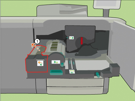 [Använd handtag 4 för att öppna vändningsenheten.] |