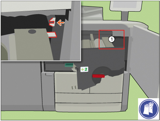 [Remove the spiral cleaner from the TTF.] [Place the spiral cleaner on the packaging of the new cleaner.] [When the spiral cleaner has cooled down, discard the cleaner into a common dustbin.] Or return the cleaner to your service organization. |