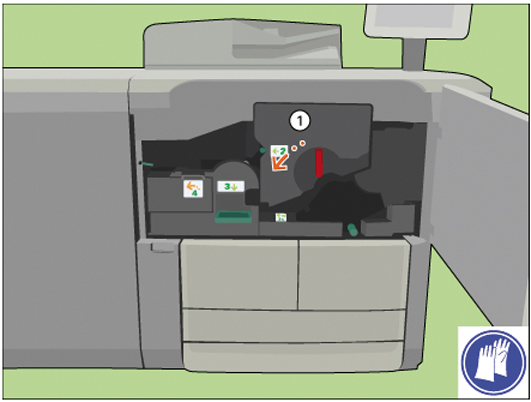 Vedlikehold kreves straks. Det anbefales å bytte spiralrenseren så snart som mulig. Du kan skrive ut omtrent 45 000 ark til før det blir helt nødvendig å bytte spiralrenseren. |