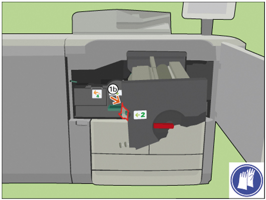 [Use el mango 2 para abrir la tapa y comprobar si hay papel.] |