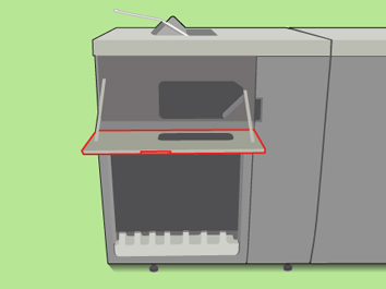 Legen Sie ein A3/Tabloid-Blatt in das Stapelfach, um zu verhindern, dass Teile in den Stapler fallen. |