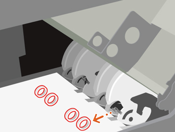 Vaihda neljä kiertorengasta (merkinnällä (1) alla olevassa kuvassa), jos lajittelun laatu ei ole hyvä tai jos kiertorenkaissa näkyy merkittävää kulumista. Kiertorenkaat sijaitsevat etukannen takana.