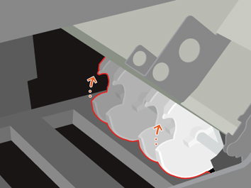 Замените 4 поворотных кольца (отмечены значком (1) на иллюстрации ниже) в случае низкого качества укладки, а также в случае, если поворотные кольца сильно изношены. Поворотные кольца закрыты передней крышкой.