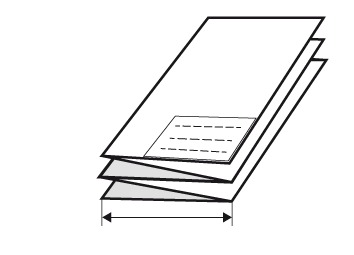 Festlegung der Faltbreite der ersten Faltstufe (Z-Faltung). Beachten Sie, dass in der Paketbreite der Wert für [Breite des Heftrands] nicht enthalten ist. Die Größe der Rückseite entspricht also der Paketbreite zuzüglich der Heftrandbreite. |
