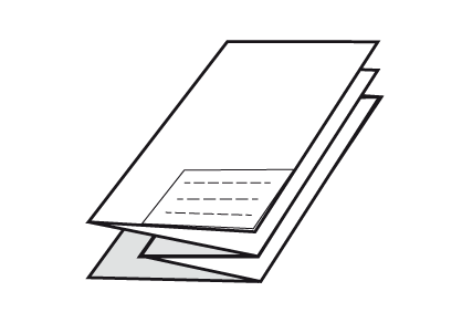 Foldet pakke, men den sidste fold (bagside) er over den fulde bredde. Den forrige fold kan være kortere. |