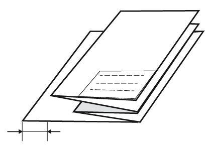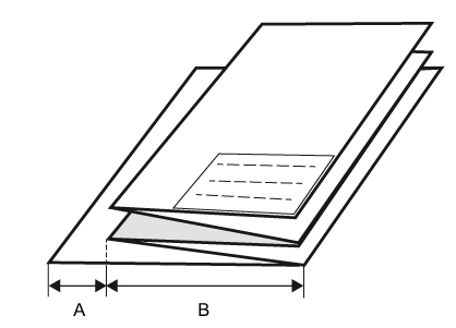 Festlegung der Faltbreite der ersten Faltstufe (Z-Faltung). Beachten Sie, dass in der Paketbreite der Wert für [Breite des Heftrands] nicht enthalten ist. Die Größe der Rückseite entspricht also der Paketbreite zuzüglich der Heftrandbreite. |