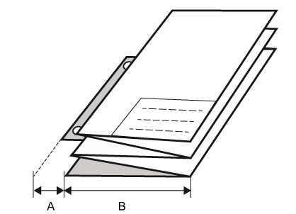 Składany jest pakiet dokumentów, ale ostatnie złożenie (z tyłu) ma dodatkową szerokość. Poprzednie złożenie może być krótsze. |