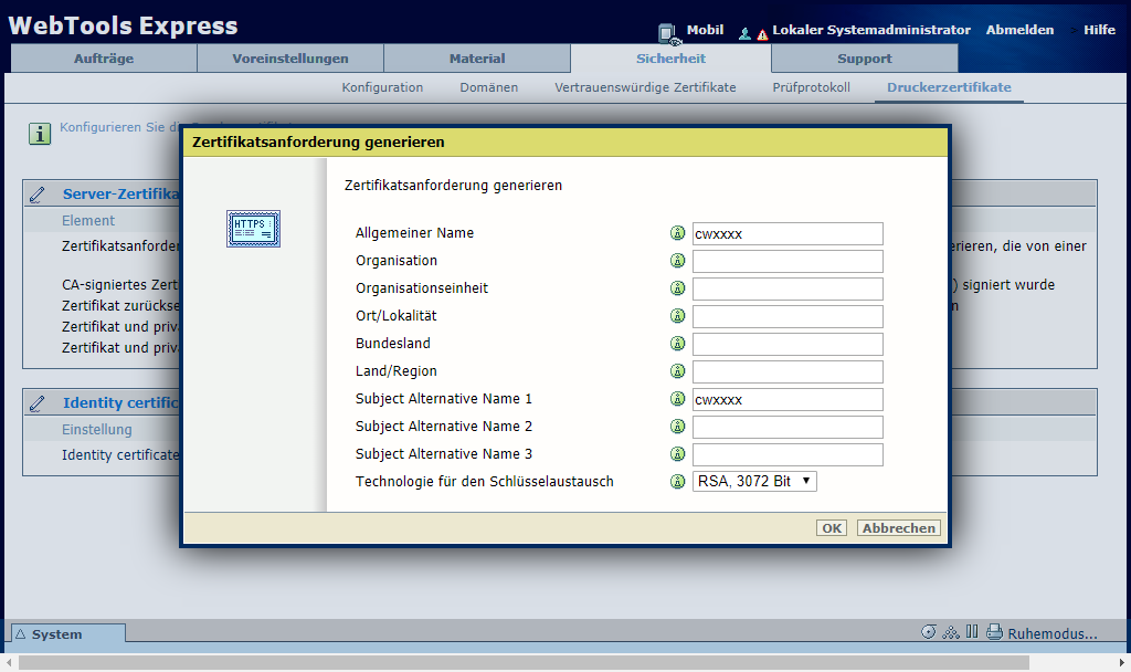 Gehen Sie zum Generieren einer Zertifikatsanforderung wie folgt vor: