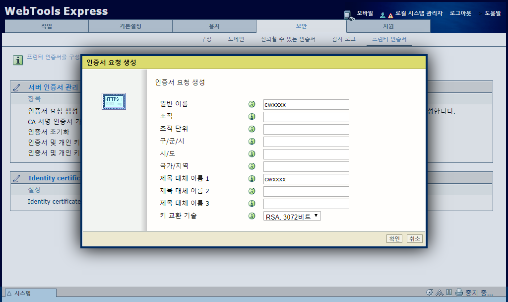 HTTPS, 802.1X 또는 IPsec를 통해 완전히 신뢰할 수 있는 인증을 받으려면 인증 기관이 발급한 인증서(CA 서명 인증서)를 요청하여 가져오면 됩니다.
