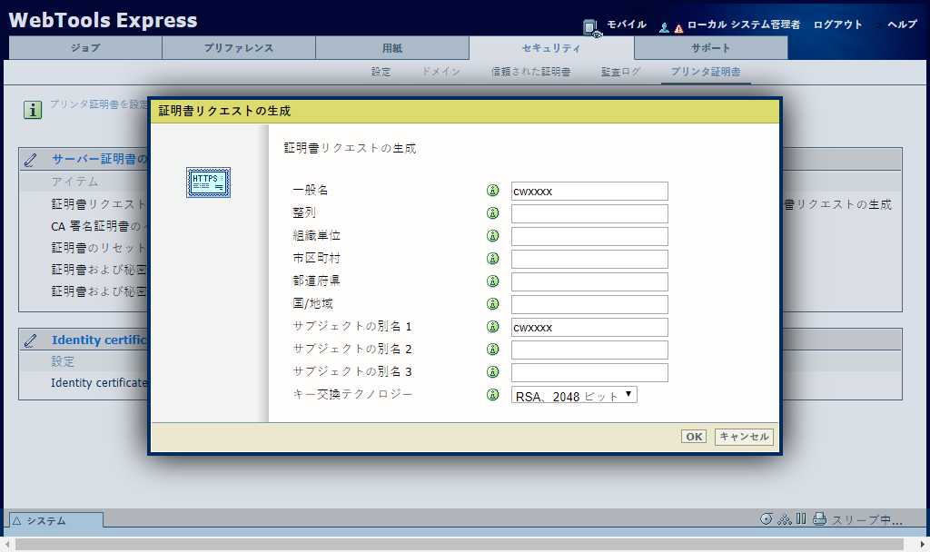 HTTPS、802.1X または IPsec を介して完全に信頼された承認を実現するには、認証機関によって提供される証明書をリクエストしてインポートできます (CA 署名の証明書)。
