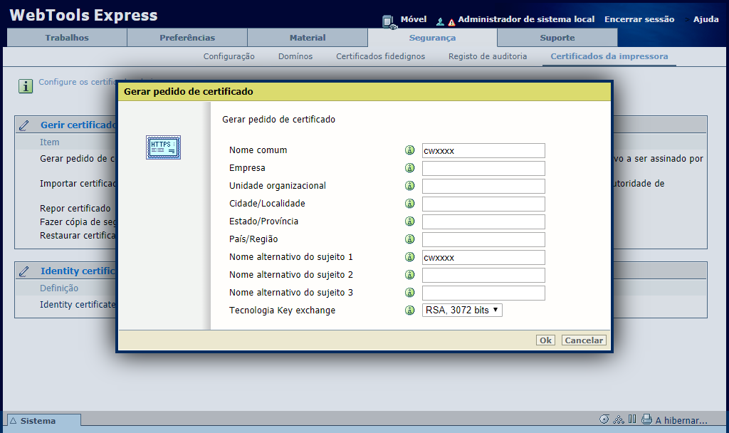 Verifique com o seu departamento de TI quais os valores necessários para a solicitação do certificado.
