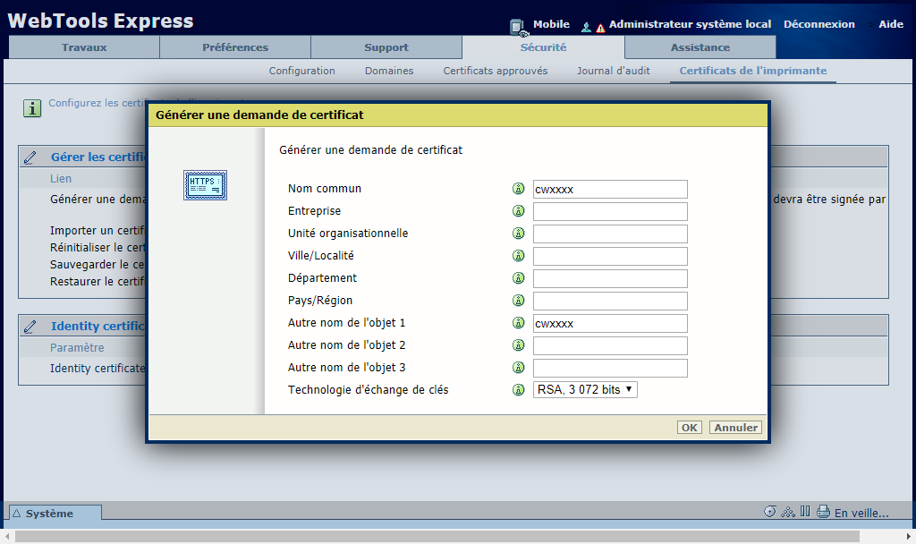 Vérifiez tout d'abord auprès de votre service informatique les valeurs requises pour la demande de certificat.