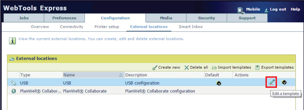 If you want to use USB as a location, you have to make settings for USB first. You can make the settings in WebTools Express.
